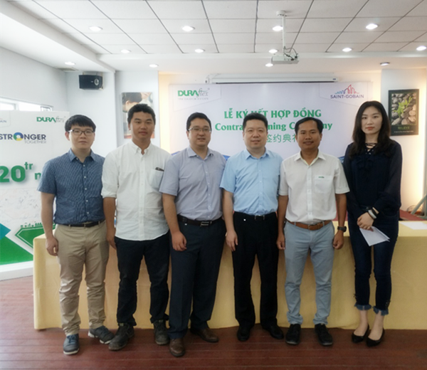 圣戈班集團(tuán)越南區(qū)總經(jīng)理Mr. Robin,協(xié)富公司廠長Mr.Le Huu Sang、總顧問Mr. Huynh Vinh Hue,武漢院新材事業(yè)副部長白鋒、項(xiàng)目經(jīng)理?xiàng)畈?、商?wù)經(jīng)理王琛、邵燁等參加了簽約儀式。