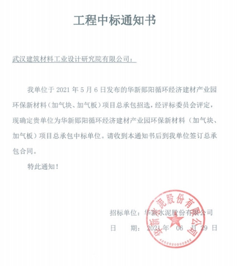 在武漢建材院新一屆領導班子的帶領下,新材事業(yè)部的骨干團隊與華新水泥股份有限公司簽訂了華新鄖陽循環(huán)經(jīng)濟建材產(chǎn)業(yè)園環(huán)保新材料(加氣塊、加氣板)項目EPC總承包建設項目,該項目是華新水泥涉足環(huán)保新材料(加氣塊、加氣板)領域的第一個自建項目,也是武漢建材院與華新水泥在繼砂石骨料業(yè)務多年良好合作基礎上的又一次深化合作。